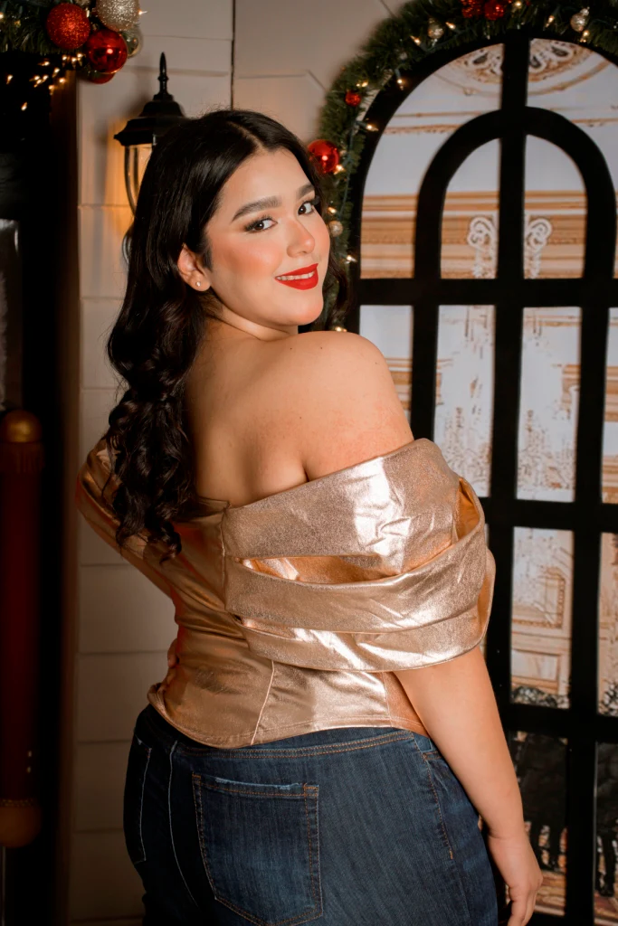 Blusa fiesta brillosa off the shoulders