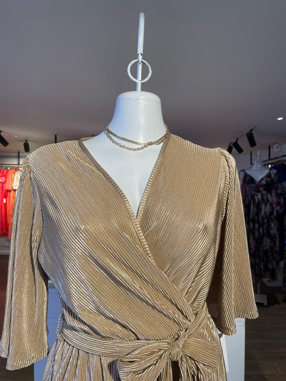 Vestido Brilloso Con Cinto