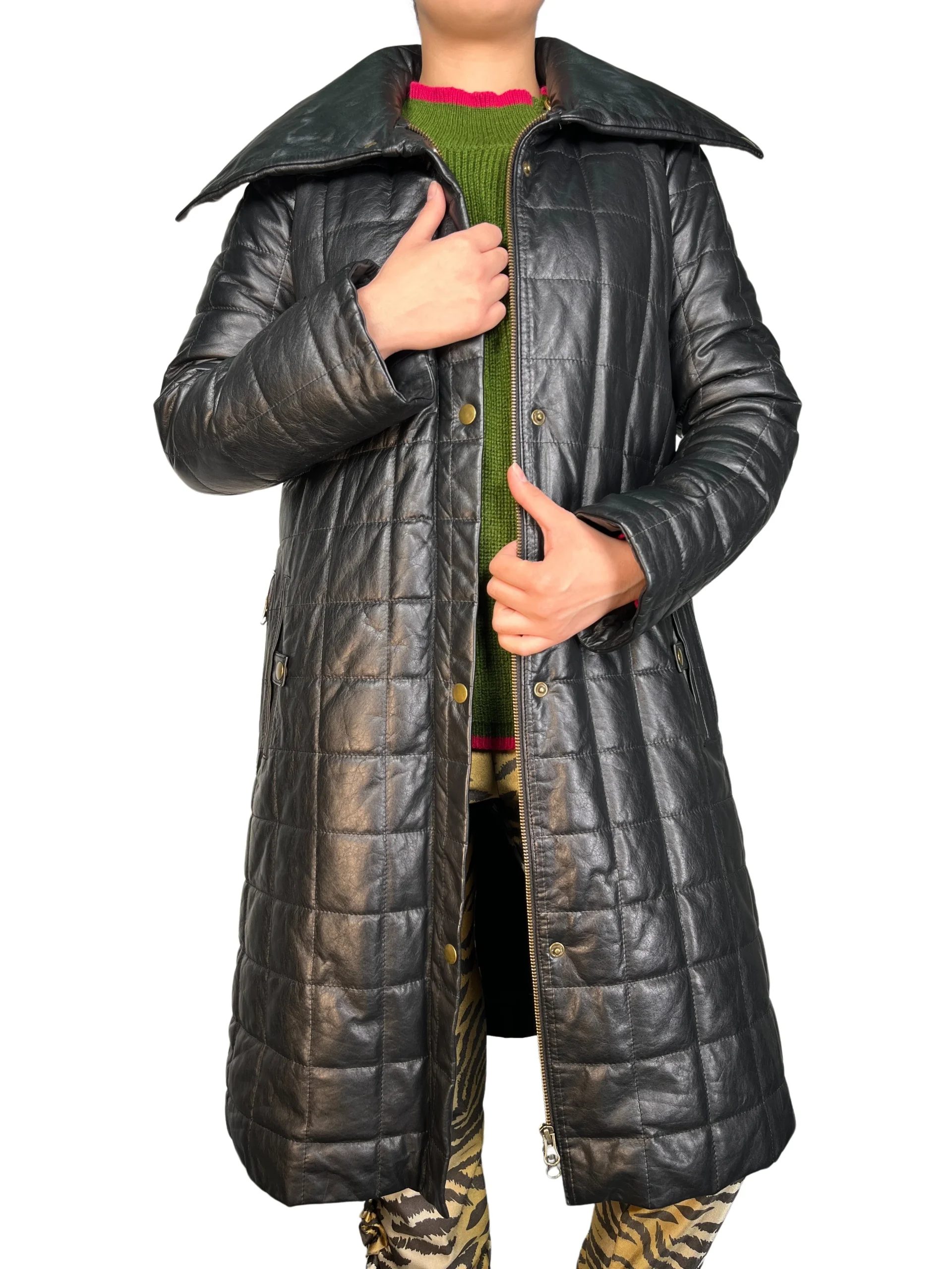 Se siente como cuero. No especifica talla. Altura de modelo 1,60