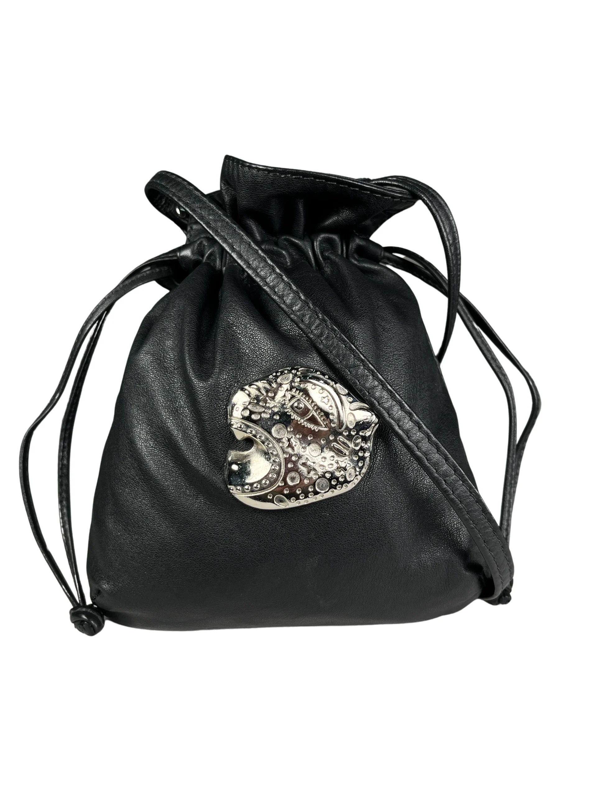 Se siente como cuero. Medidas: 20 x 18 cm. No incluye dust bag.