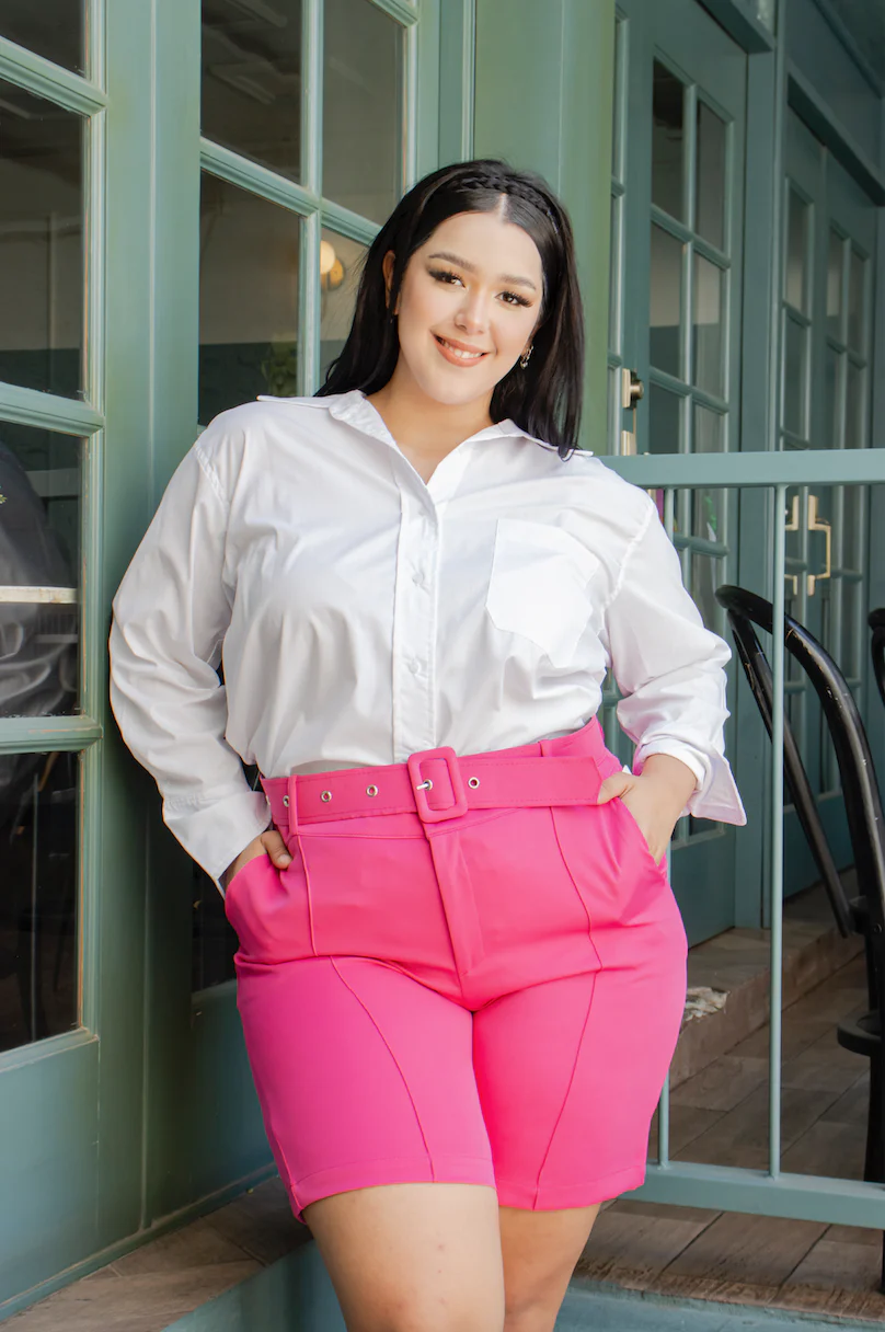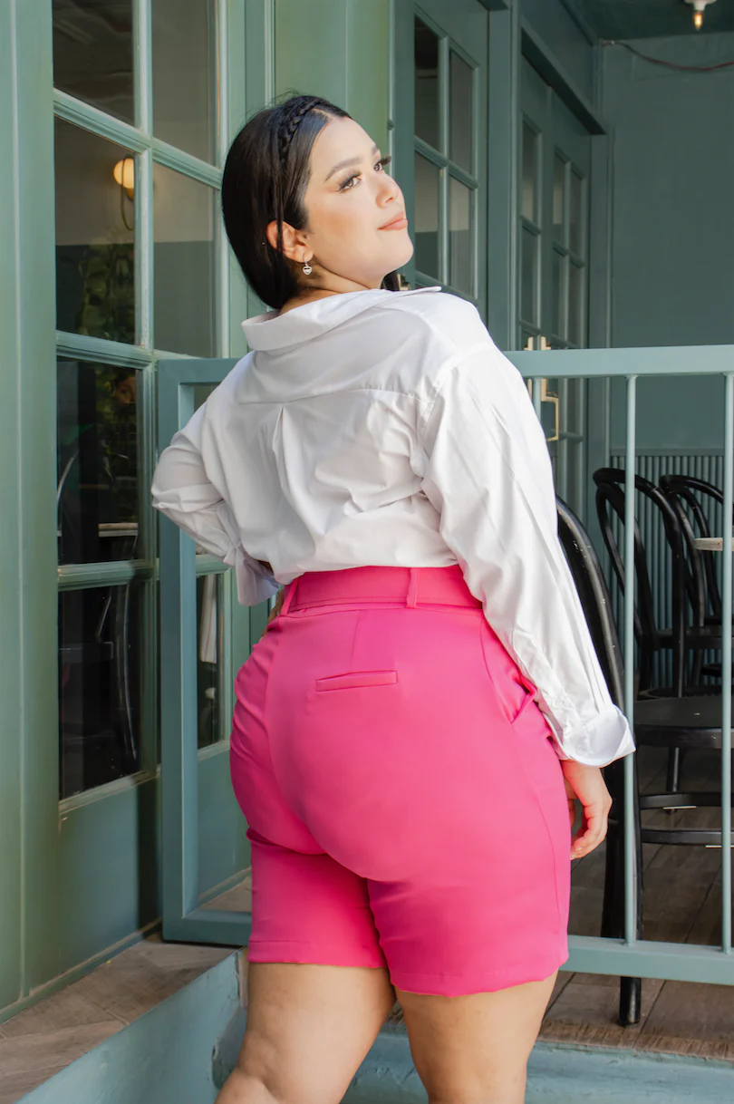Biker short de vestir, modelo de diseño con cinto, corte semi corto arriba de la rodilla, estilo liso en cinco diferentes colores: