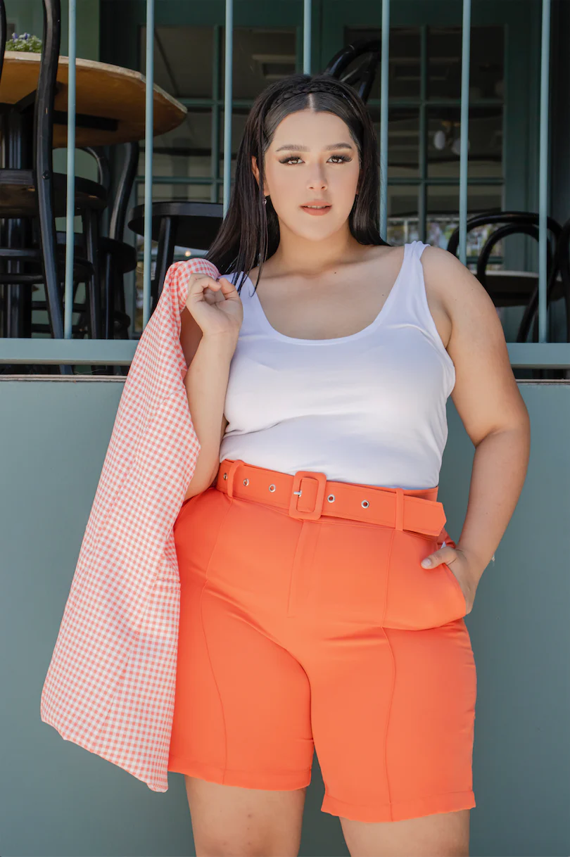 Biker short de vestir, modelo de diseño con cinto, corte semi corto arriba de la rodilla, estilo liso en diferentes colores.