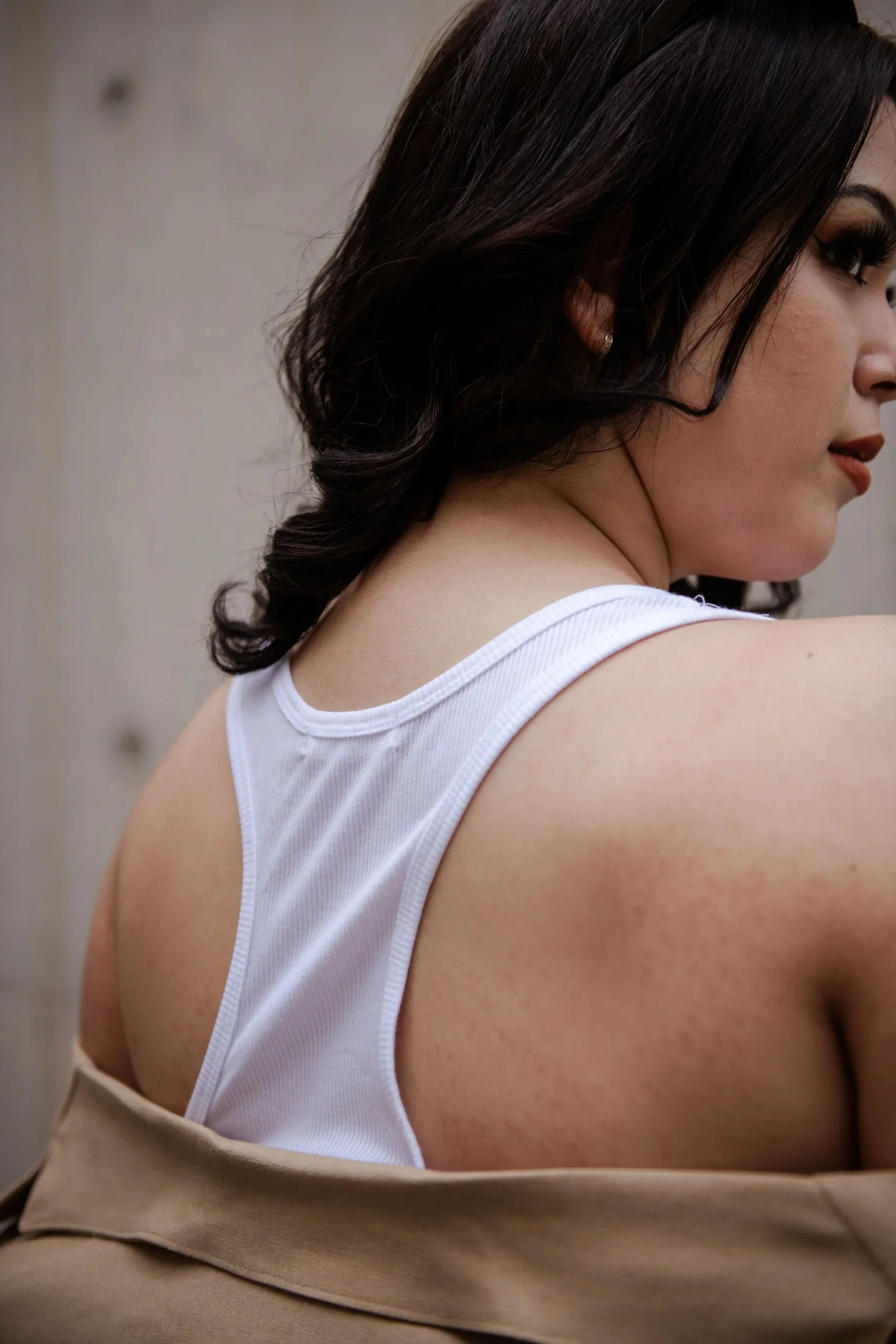 BLUSA BÁSICA, MODELO MANGA DE TIRANTE, CON CUELLO REDONDO EN DISEÑO LISO Y CRUZADO POR LA PARTE DE ATRÁS, TELA DE ALGODÓN CON NIVEL SÚPER ALTO DE STRETCH.