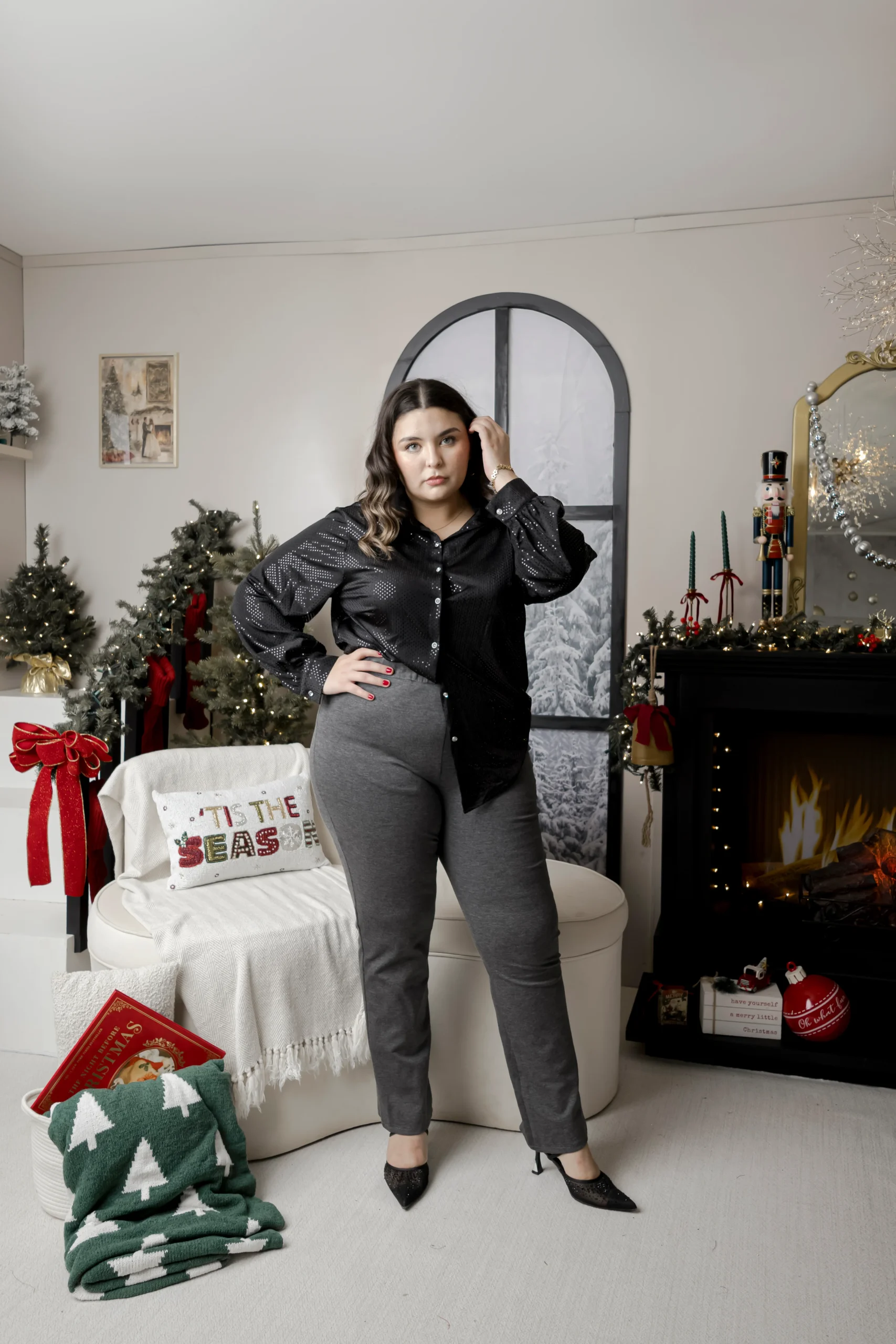 NUESTRA MODELO VISTE TALLA 42, ES DECIR 3XL.