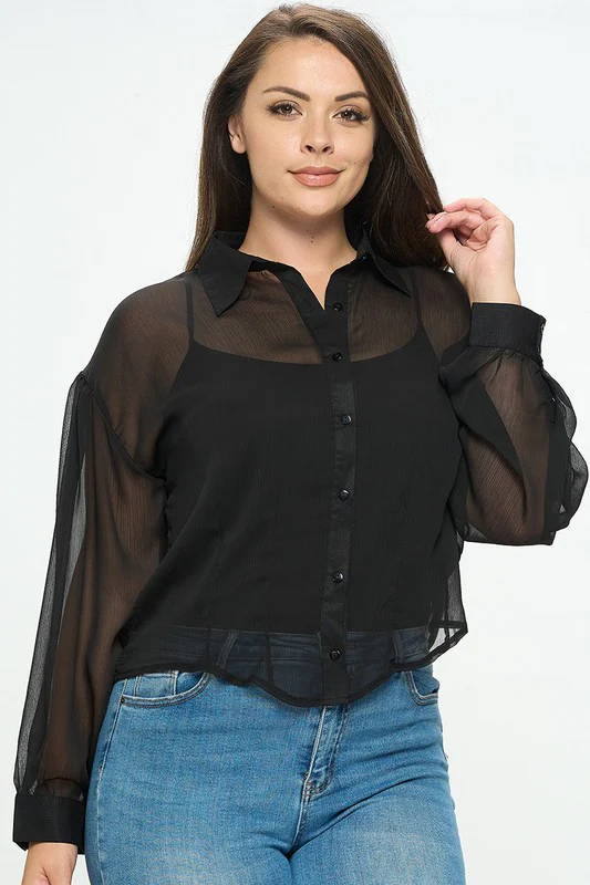 Blusa estilo camisera de mesh, modelo manga larga de botones. Buenísima opción usarse en compañía de unos SÚPER JEANS O PANTALÓN, ve y ELIGE TUS FAVORITOS.
