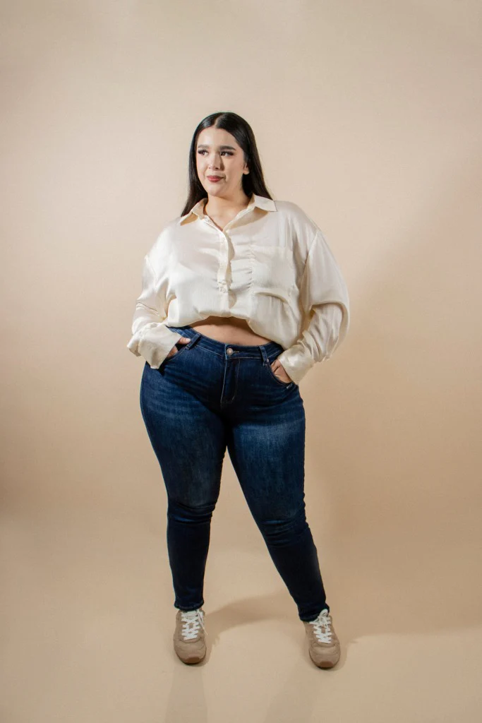 NUESTRA MODELO LILIANA VISTE TALLA 40, ES DECIR 2XL.