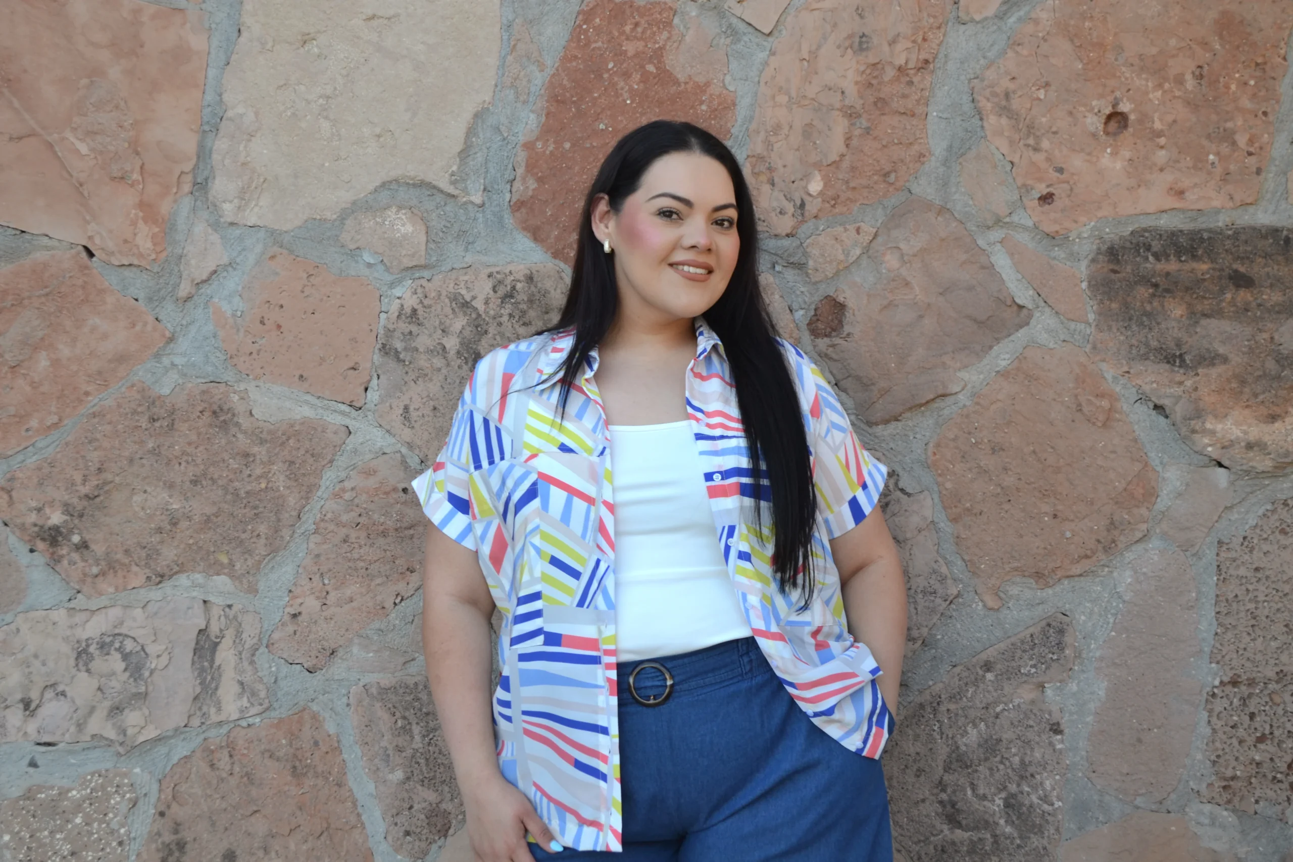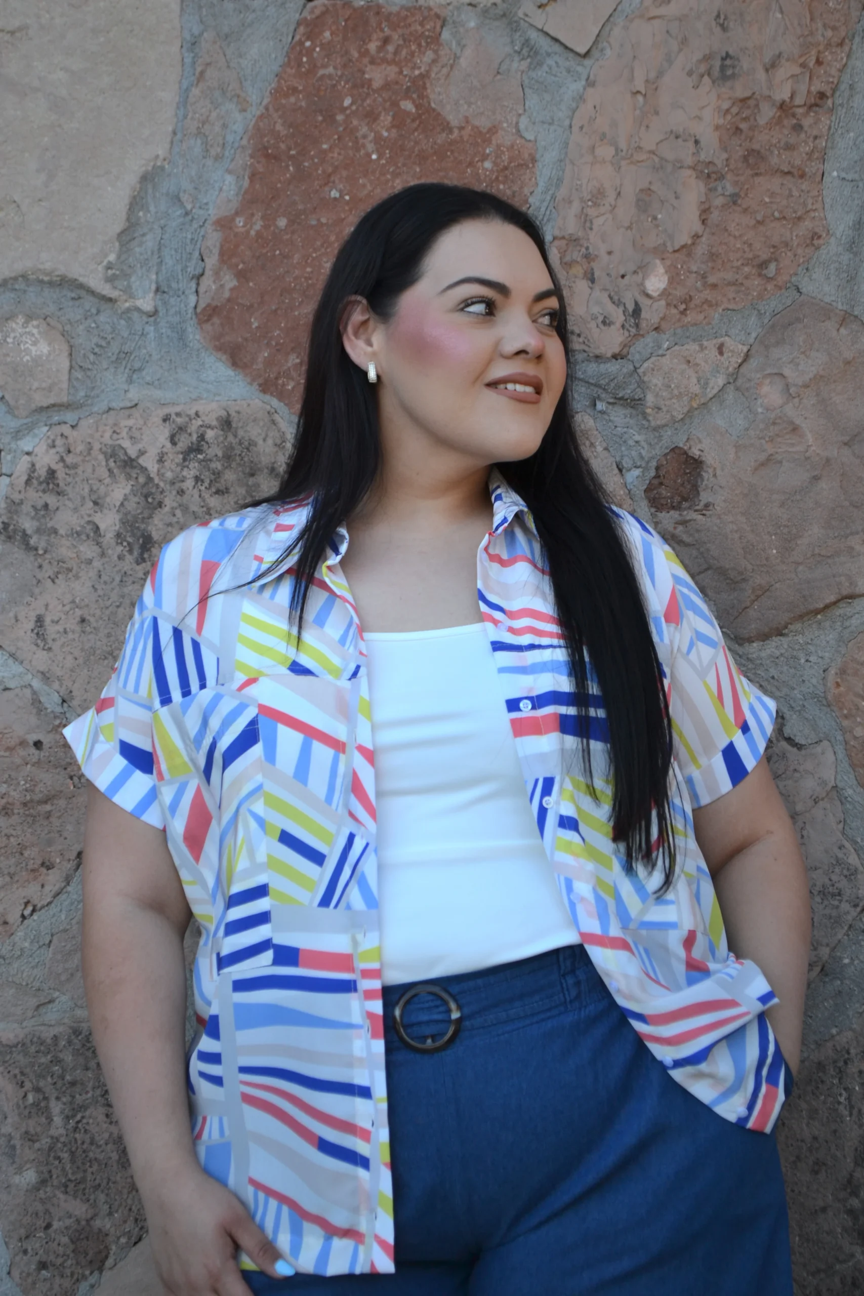 Blusa camisera manga corta, cuello mao, modelo en corte semi oversized y diseño de estampado súper cool.