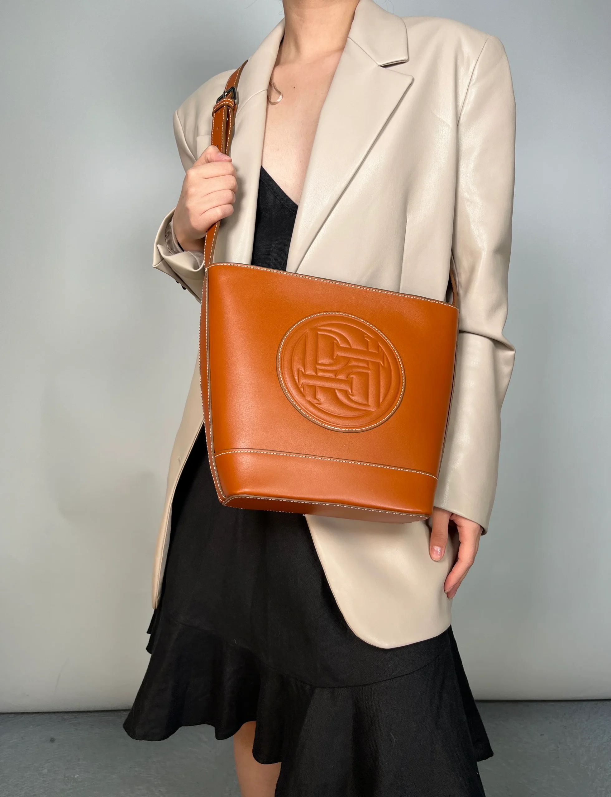 Se siente como cuero. Medidas: 20 cm x 23 cm x 9 cm. Incluye dust bag original de la marca.