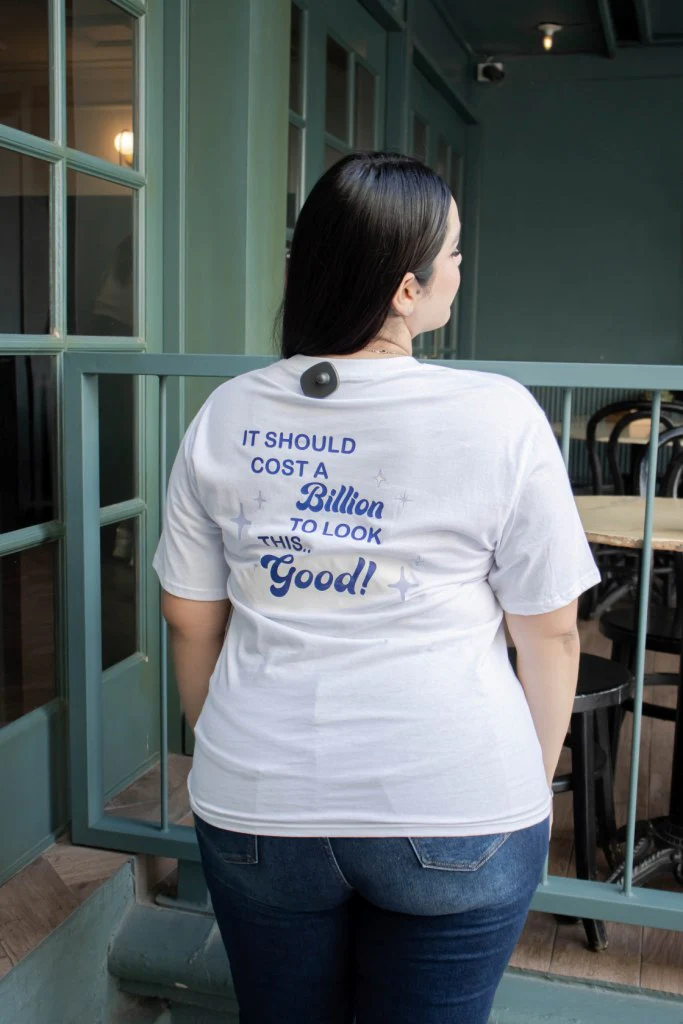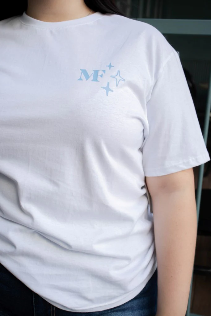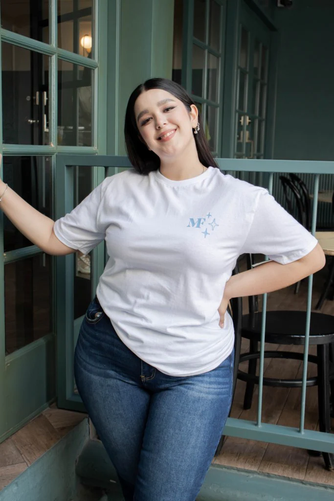 T-shirt básica en color blanco con estampado (sublimado) con texto color fiusha al frente e ilustrativos, modelo de cuello redondo, manga corta. Combínala con unos súper JEANS y luce FA BU LO SA.