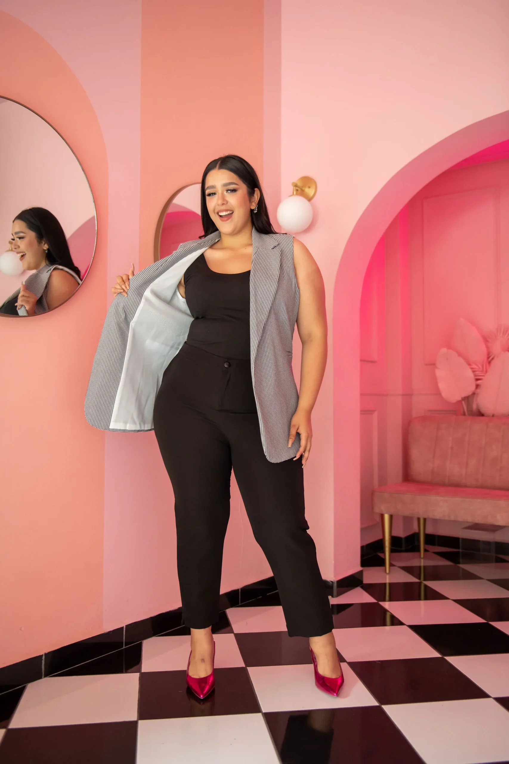 Chaleco de vestir, modelo cuello clásico, corte semi corto con simulación de bolsas, estampado ideal para hacer relucir tu outfit.