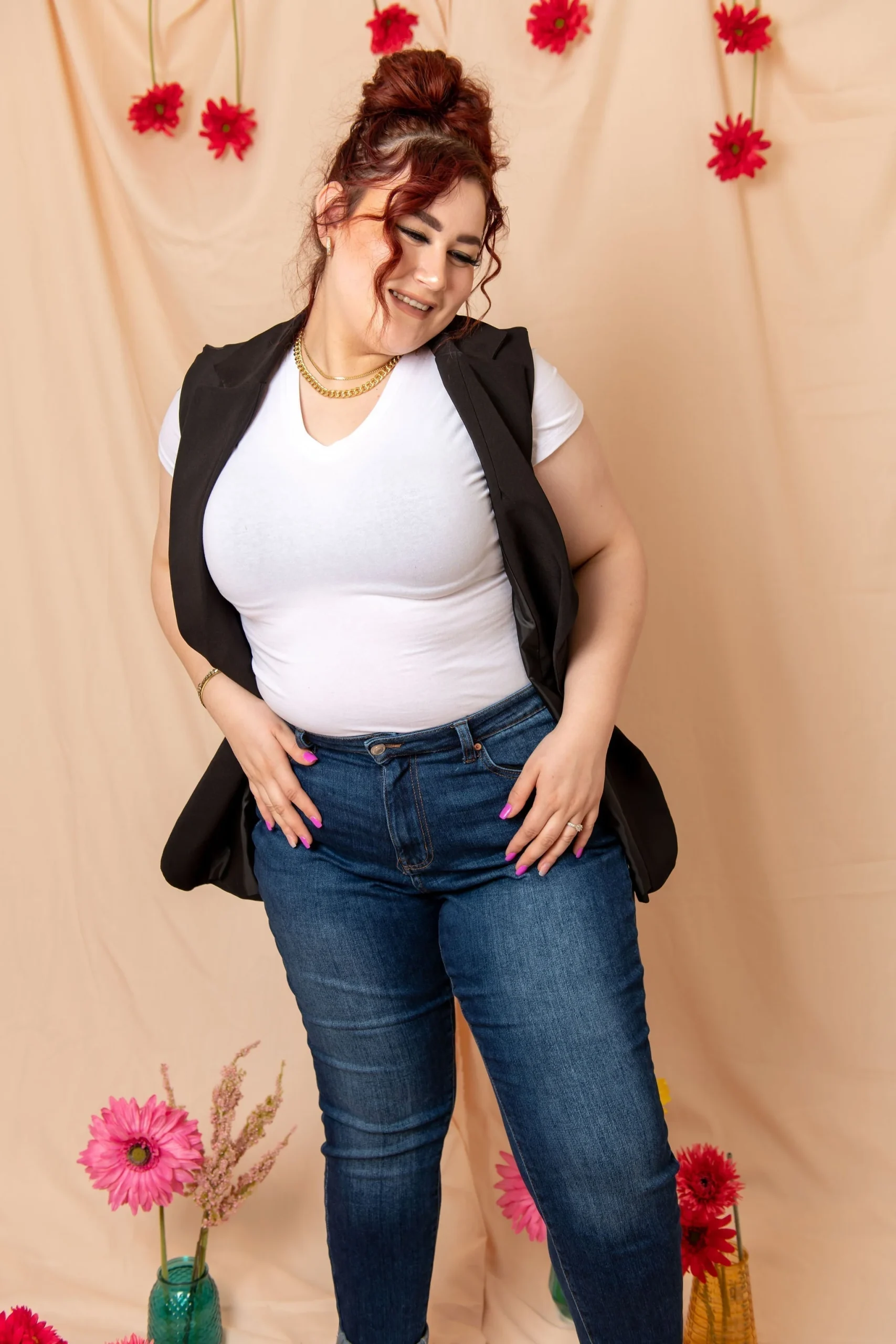 Nuestro modelo Daniela viste talla 40, es decir 2XL.