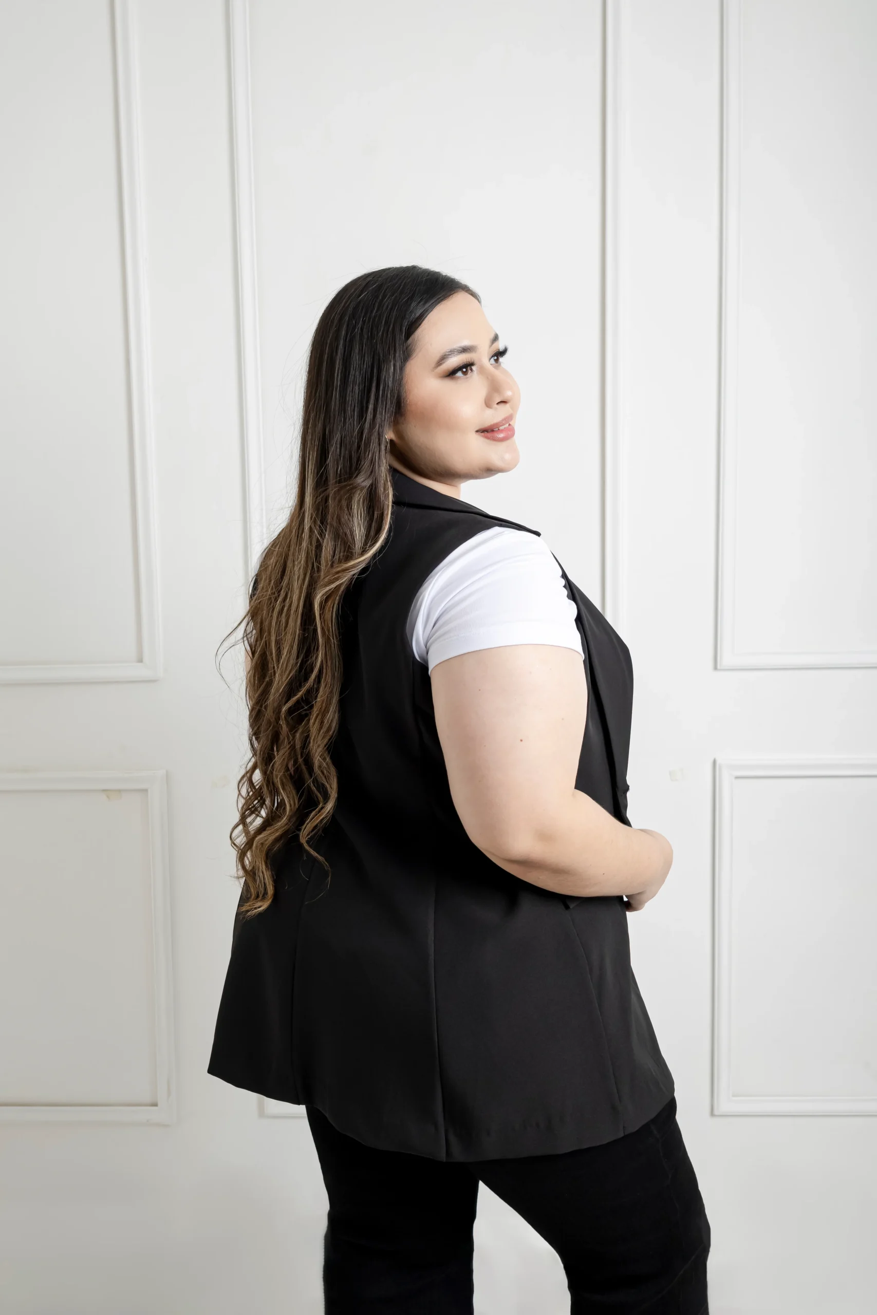 Chaleco de vestir, modelo cuello clásico, corte semi corto con simulación de bolsas, ideal para hacer relucir tu outfit.