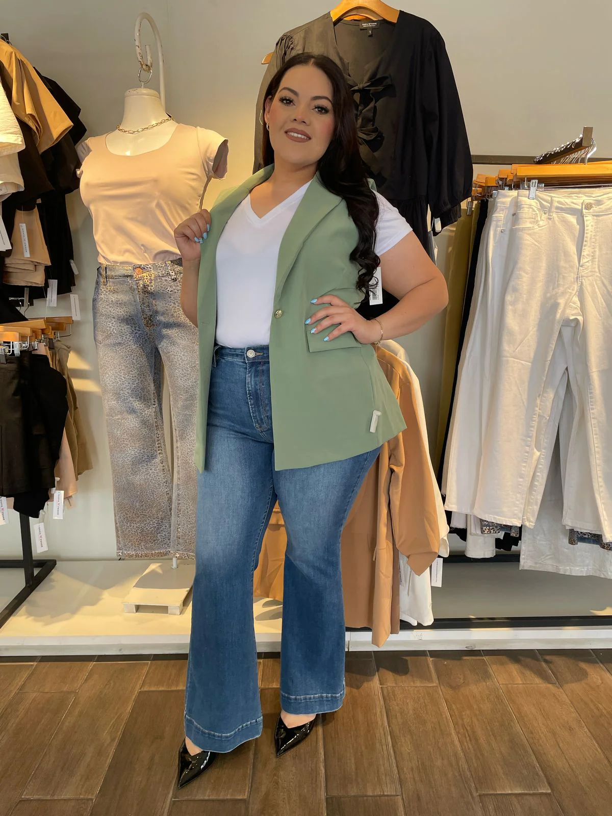 Nuestra modelo Daniela viste talla 40, es decir 2XL.
