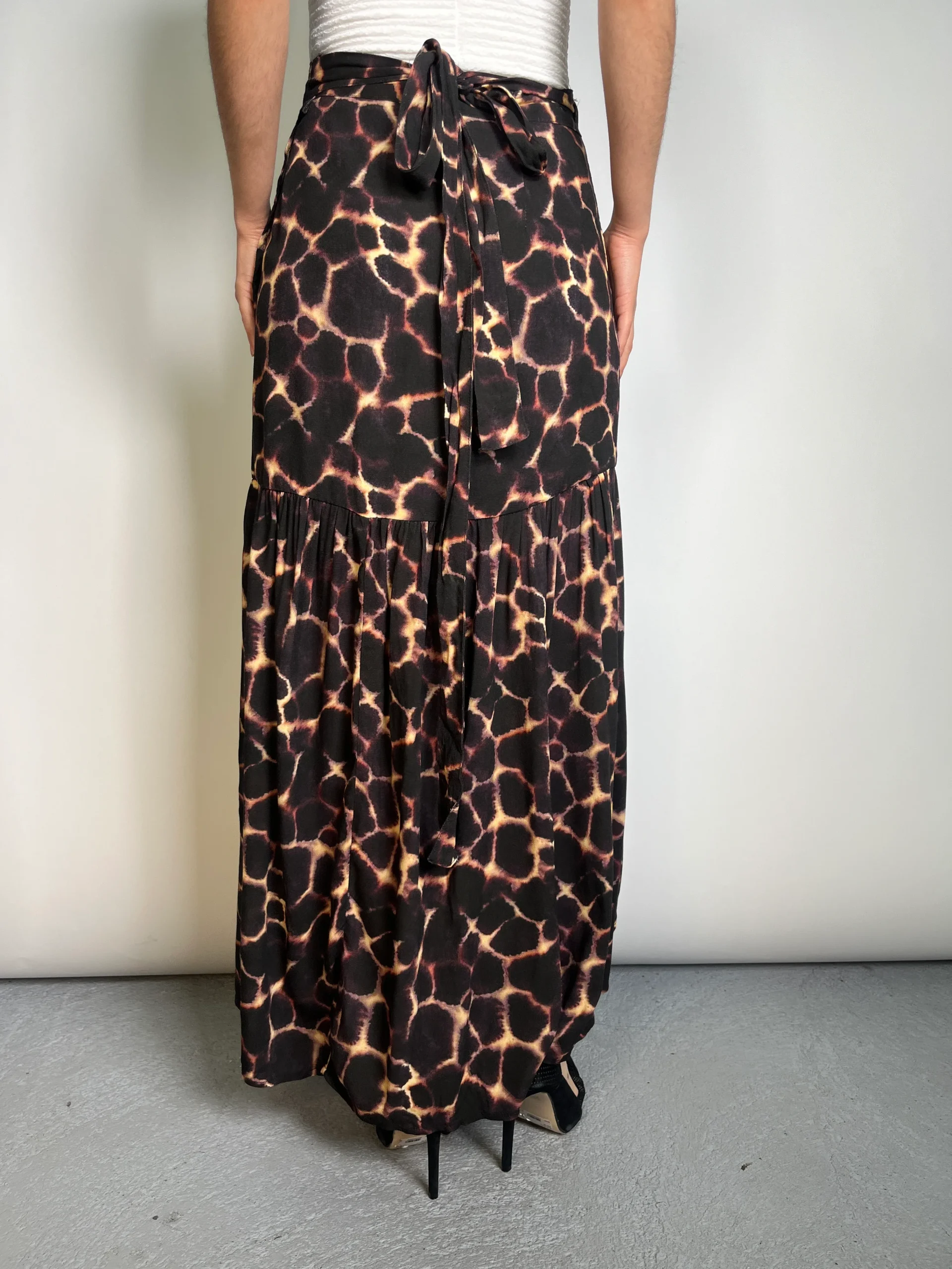 No especifica talla. Detalle en costura en cintura. Altura de modelo 1,60