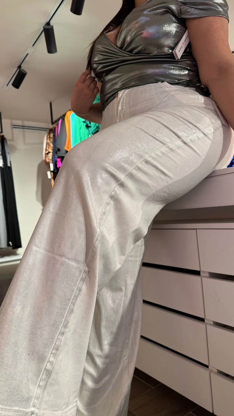 Sé el primero en valorar “Jeans flare con foil efecto dorado”