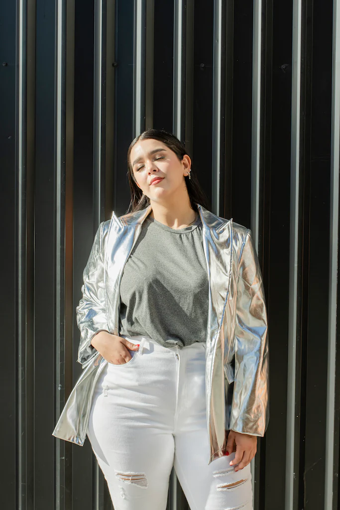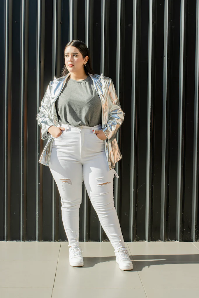 Nuestra modelo Liliana viste talla 40, es decir 2XL.