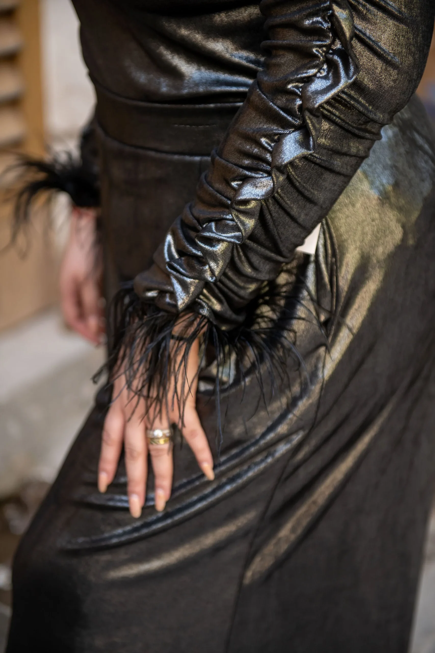 Pantalón de fiesta efecto brilloso, corte súper acampanado «FLARE», y elástico superior súper reforzado para más comodidad y ajuste.