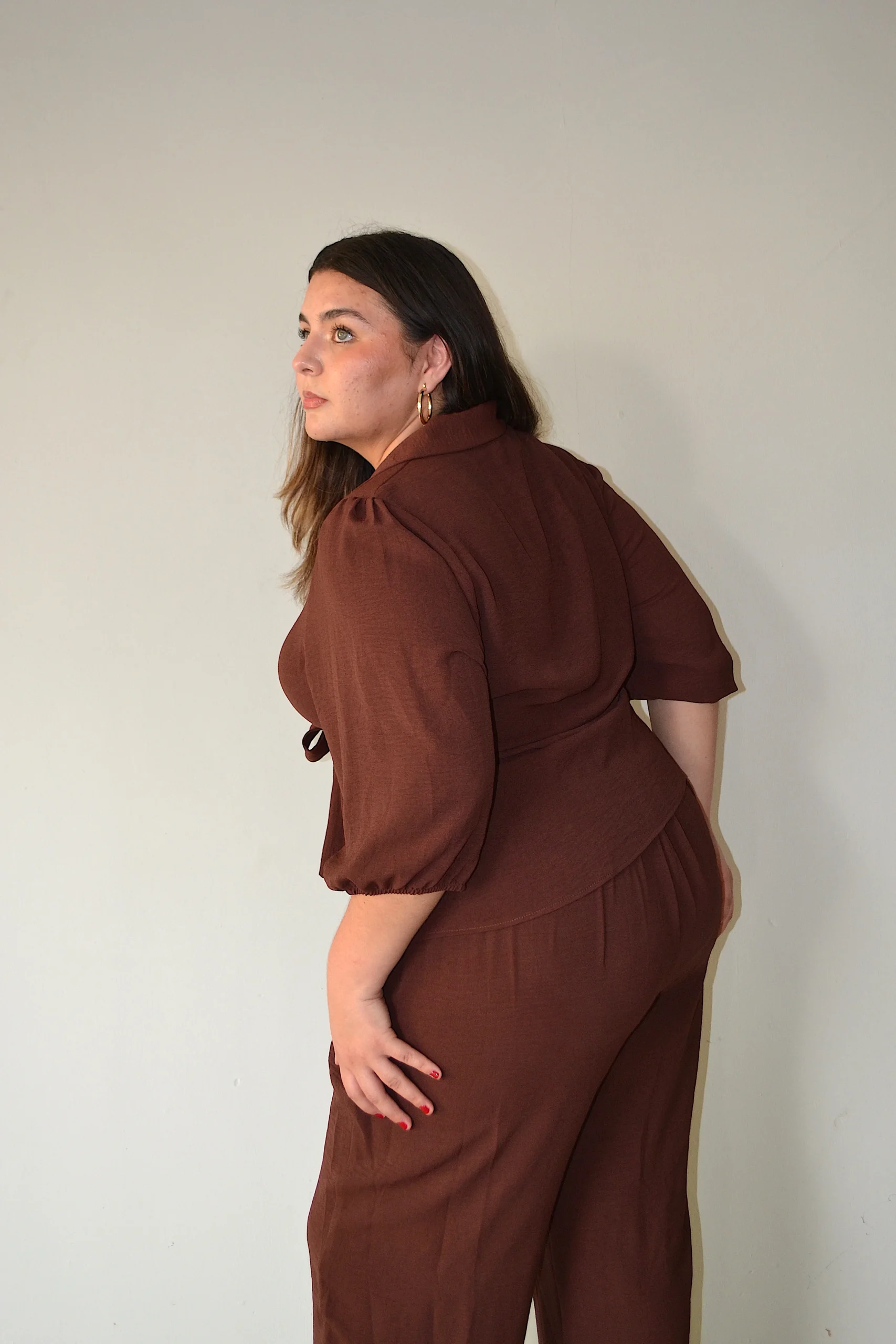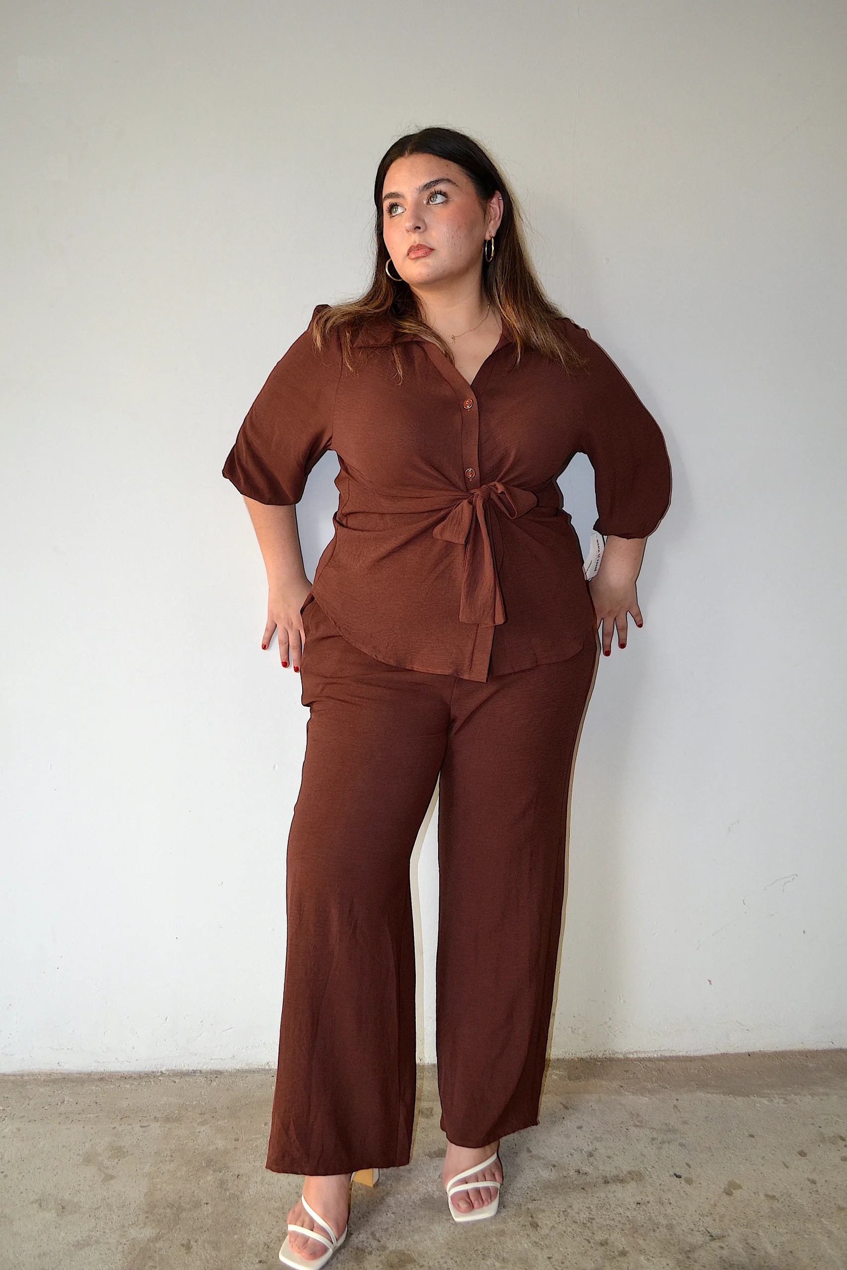 Set de pantalón y blusa tipo camisera manga 3/4 con cuello mao básico, LAZO EN LA CINTURA para ajustarse al frente ideal para verte súper ELEGANTE, FASHION Y MUY COOL. pantalón de tiro alto elastico en la parte de la cintura con bolsas ,nivel de stretch alto. Corte acampanado «FLARE»‘para lucir guapisima .