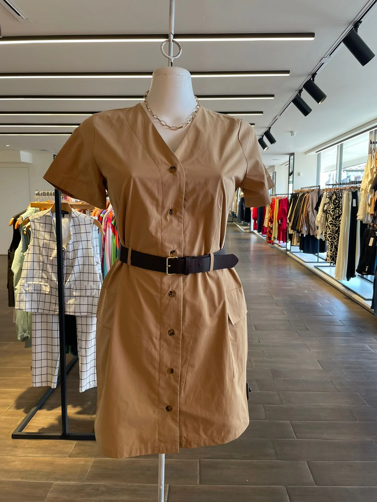 Vestido cargo con cinto ,lindisimo con botones modelo manga corta modelo clásico. con cuello mao , para lucir increíble