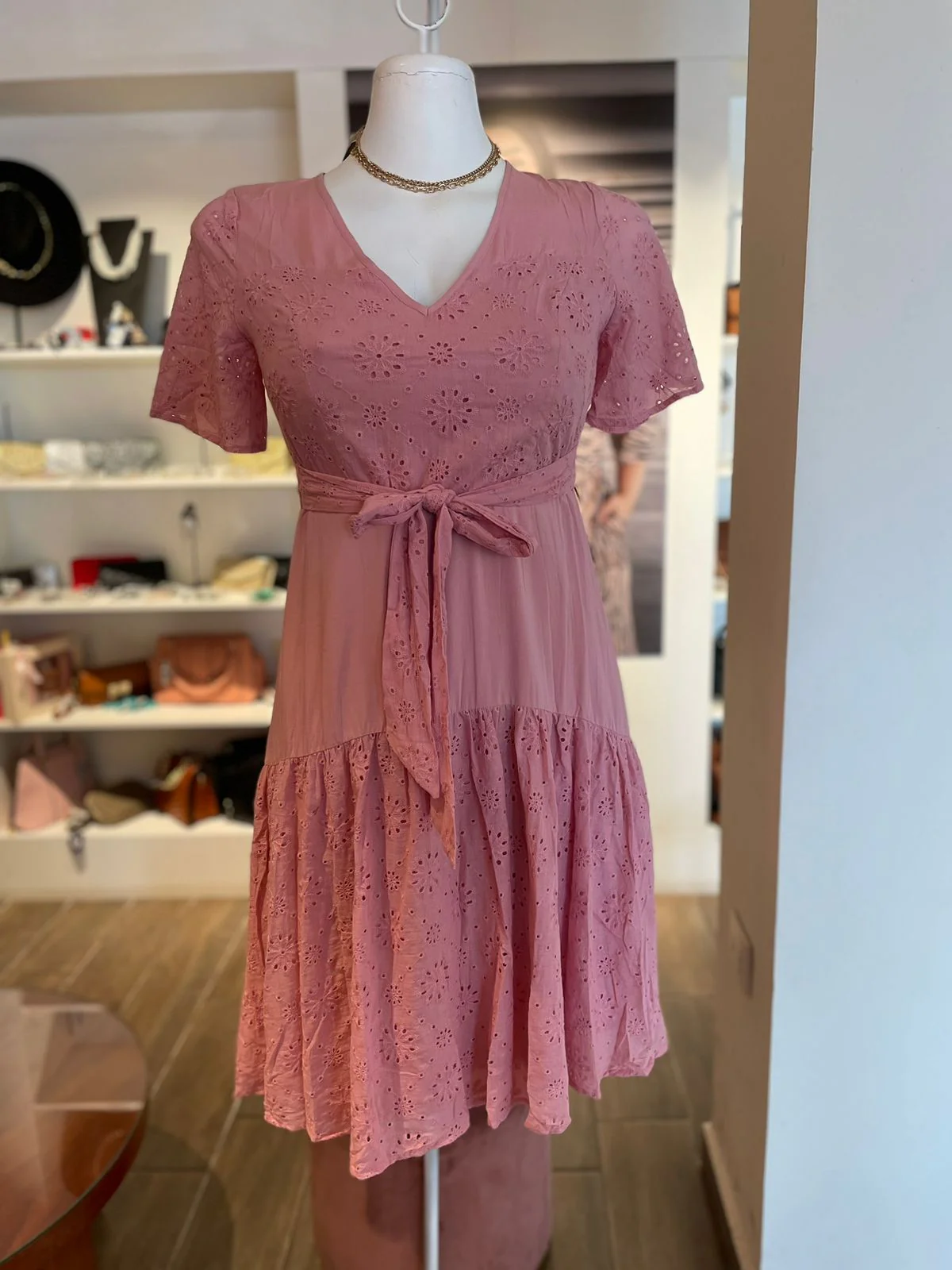 vestido modelo manga corta con lazo ajustable
